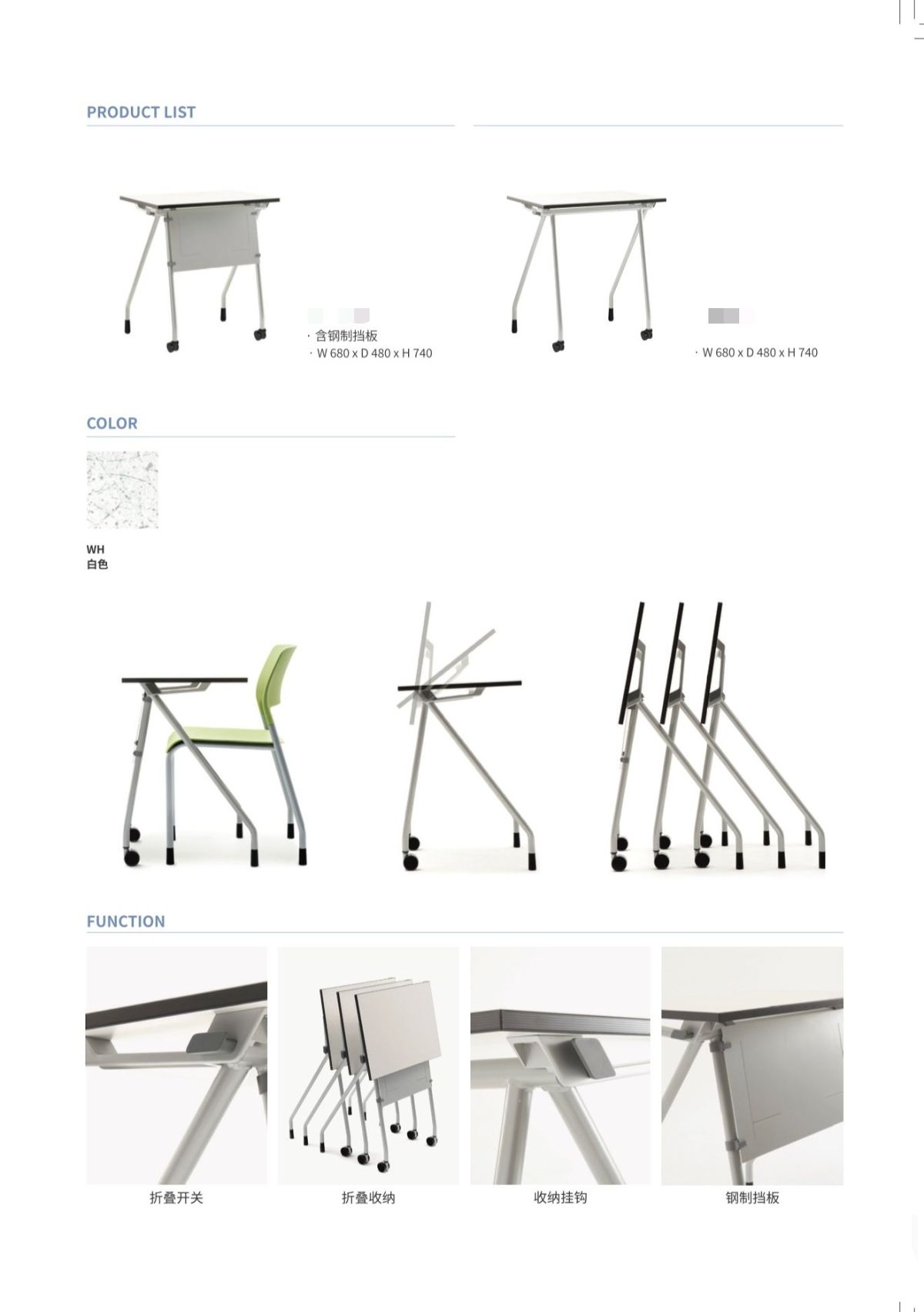 1. 多功能 — 摺合方便,儲存唔佔位。 2. 鋼腳設計 — 穩固耐用,加埋擋板更安全耐用(+$200)。 3. 簡約美觀 — 枱面同腳架顏色統一,淨係得一款好易配搭。 4. 輕便易搬 — 教學專用