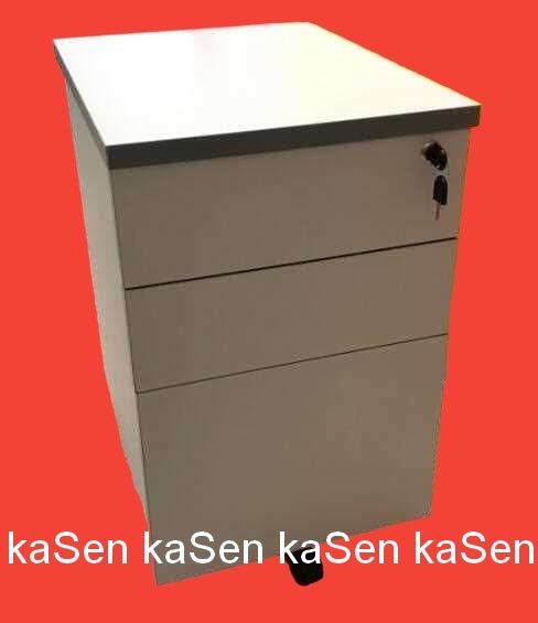 淺灰 直邊頂板 有轆 三推有鎖櫃桶 (可作床頭櫃)