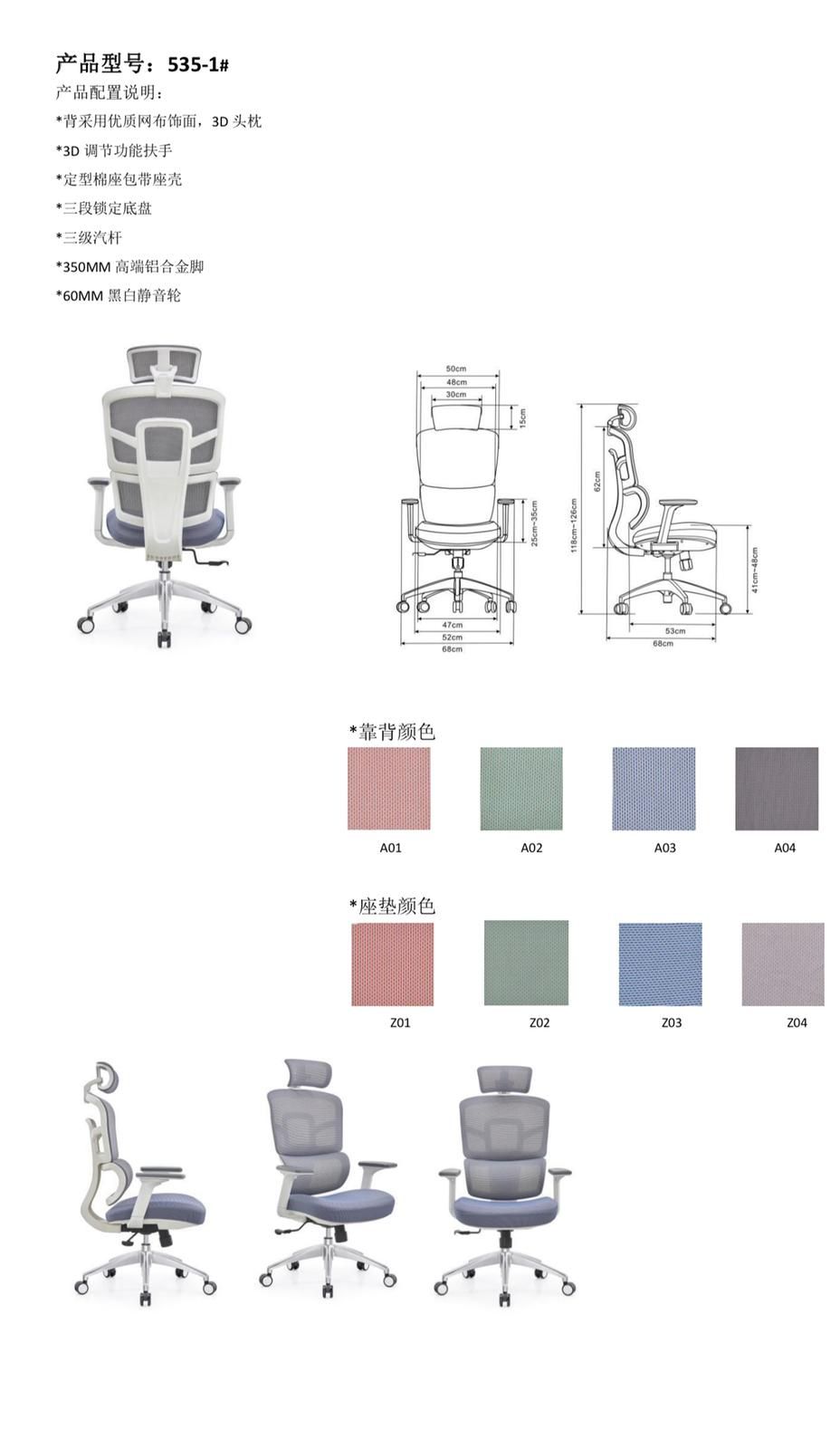 一桿3檔鎖定底盤 3D扶手(左右,前後,升降) 白框型號:535-1 鋁腳 $1,580 全網 $1,580
