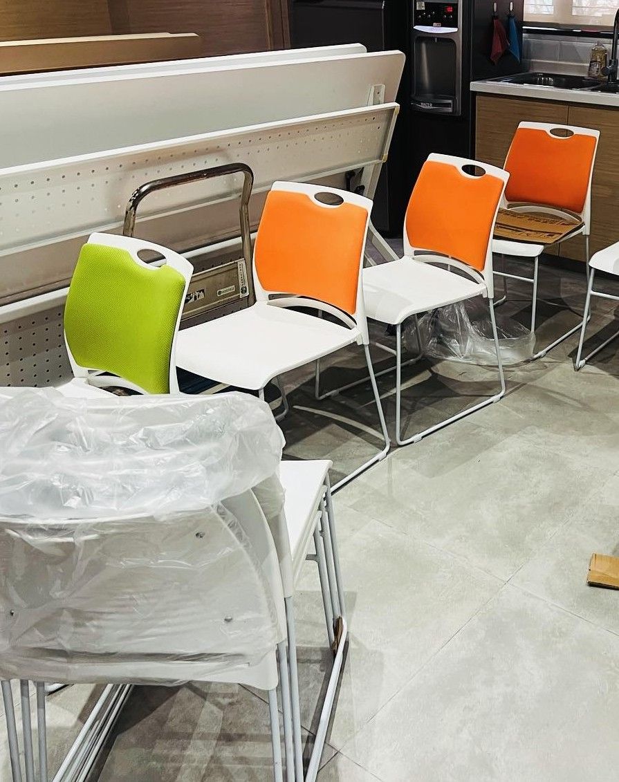 底部實心鋼架 柔軟舒適坐墊 可疊起擺放,佔地空間少 適合作為培訓椅,會議室多種用途