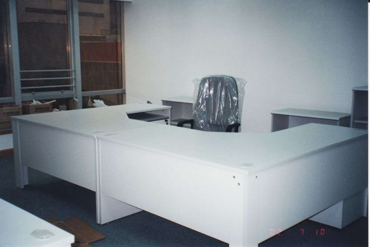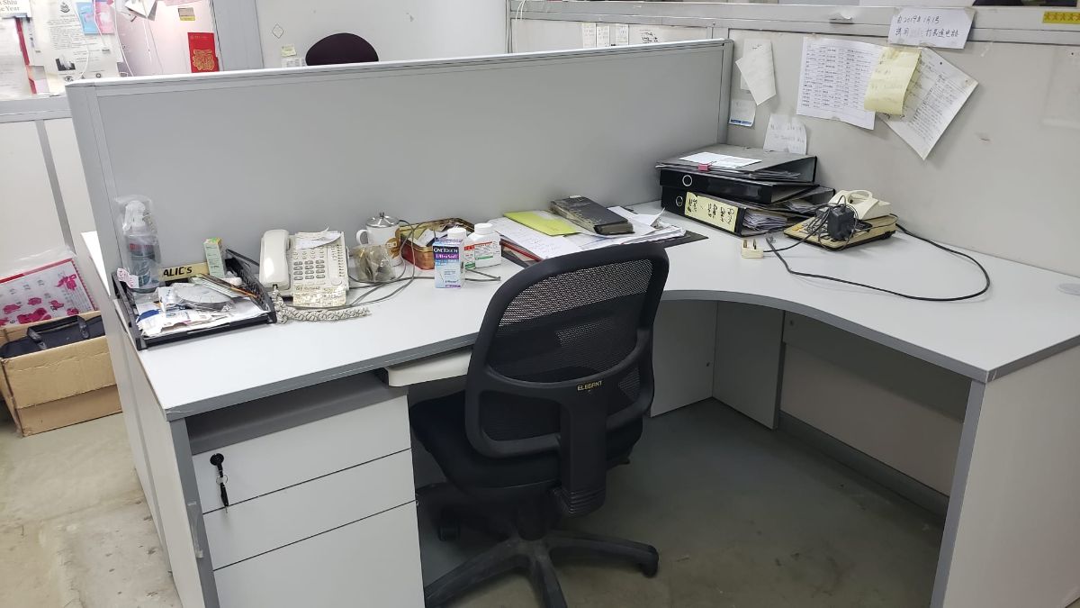 L型寫字檯連有轆三推櫃桶 (淺灰)